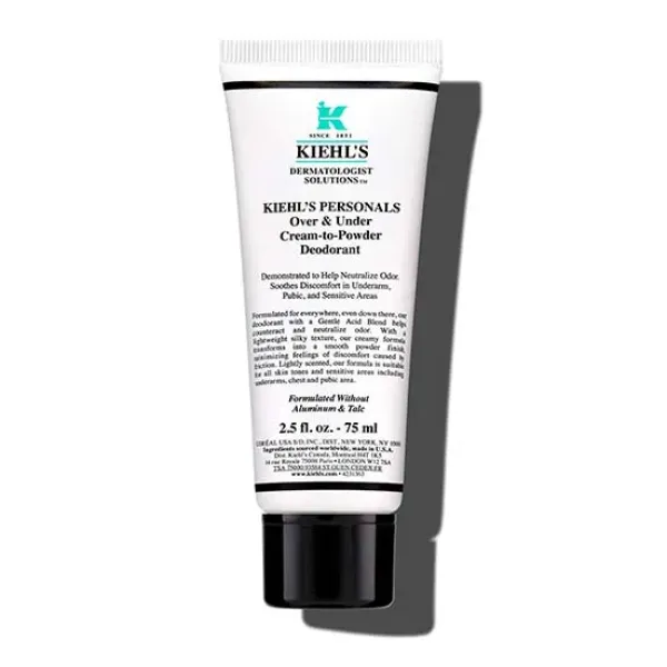 KIEHL’S PERSONALS OVER & UNDER CREAM-TO-POWDER DEODORANT, desodorante para neutralizar y contrarrestar el mal olor corporal en zonas íntimas durante 96 horas*.