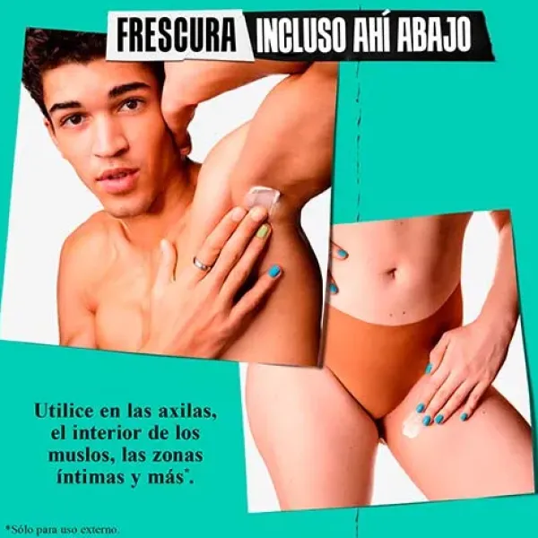 Aplicar en la ingle externa, las áreas púbicas, axilas y piernas.* Solo para uso externo.