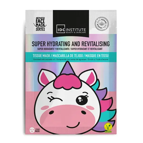 Superhidratante y revitalizante, esta mascarilla vegana de tela con cara de unicornio está elaborada con un tejido ultrafino que se adhiere cómodamente como una segunda piel.