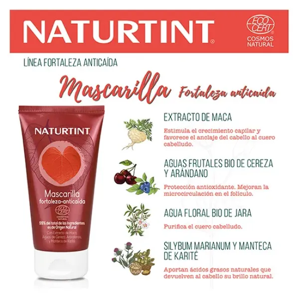 - Extracto de Maca: estimula el crecimiento capilar, protege frente al estrés medioambiental y favorece el anclaje del cabello al cuero cabelludo.