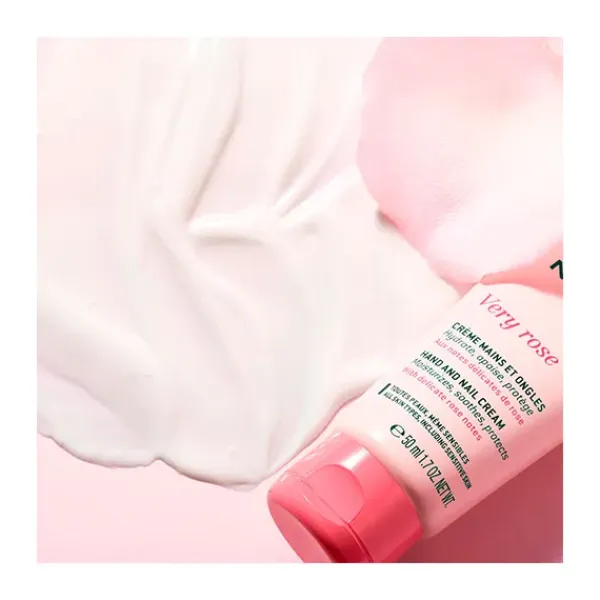 Esta crema de manos y uñas, con su delicada fragancia de rosa, hidrata, calma y protege incluso las manos más sensibles.