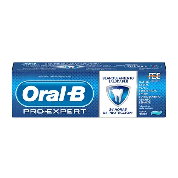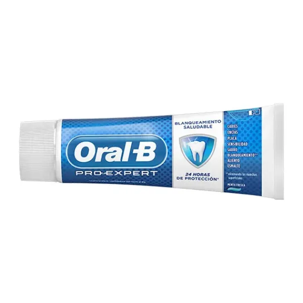 La pasta dentífrica Oral-B Pro-Expert Blancura Saludable tiene una combinación única de ingredientes que proporciona protección 24 horas al cepillarse dos veces al día.