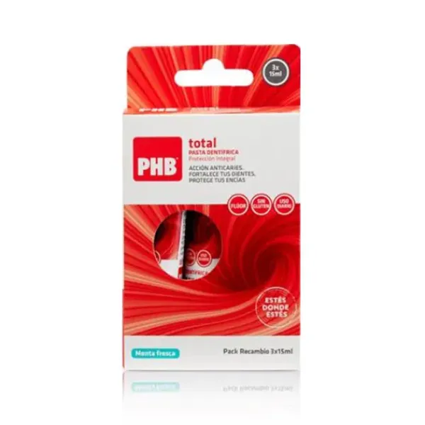 La pasta dentífrica PHB Total gracias a su formulación ofrece una protección integral de dientes y encías protegiendo contra la caries y reforzando el esmalte y la dentina.