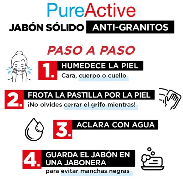 Garnier Pure Active jabón sólido anti-granitos con carbón y Ácido Salicílico es especial para el cuidado de la piel.