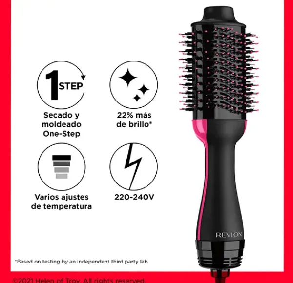 Cepillo Secador Moldeador REVLON RVDR 5222 One Step para todo tipo de cabellos. Máximo brillo y menos roturas durante el secado.