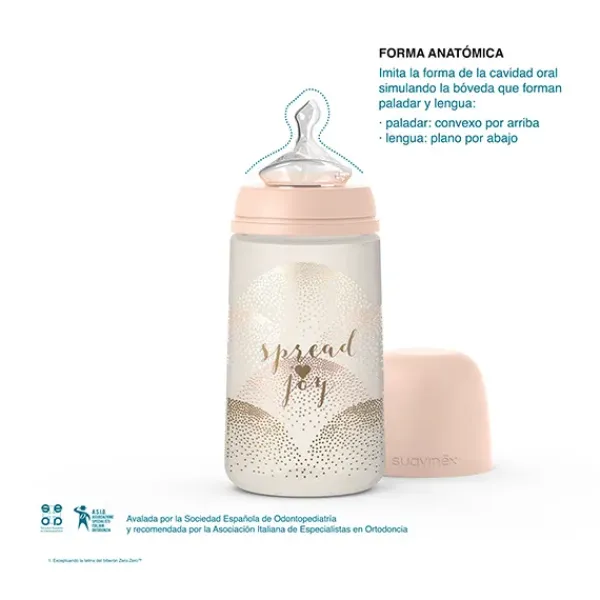 Tetina Avalada por la Sociedad Española de Odontopediatríay recomendada por la Asociación Italiana de Especialistas en Ortodoncia. Este biberón cuenta con la nueva botella Suavinex con forma recta que ofrece un agarre más cómodo para el bebé.