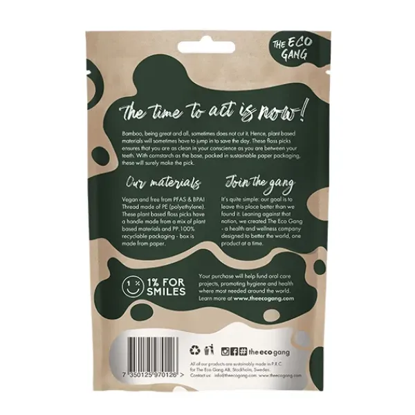 El Eco Gang Floss Pick Carbon es un producto innovador diseñado para mejorar la higiene bucal. Está especialmente diseñado para eliminar eficazmente los restos de alimentos y la placa bacteriana de los espacios interdentales.