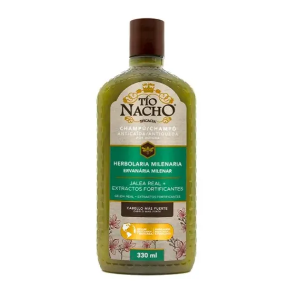 EVITA LA CAÍDA del cabello por quiebre con TIO NACHO HERBOLARIA MILENARIA, que, gracias a su selecta combinación de JALEA REAL, extractos de Germen de trigo, Aloe Vera y Soja, FORTALECE la fibra capilar y REVITALIZA desde la raíz a la punta dejándolo suave y sedoso.