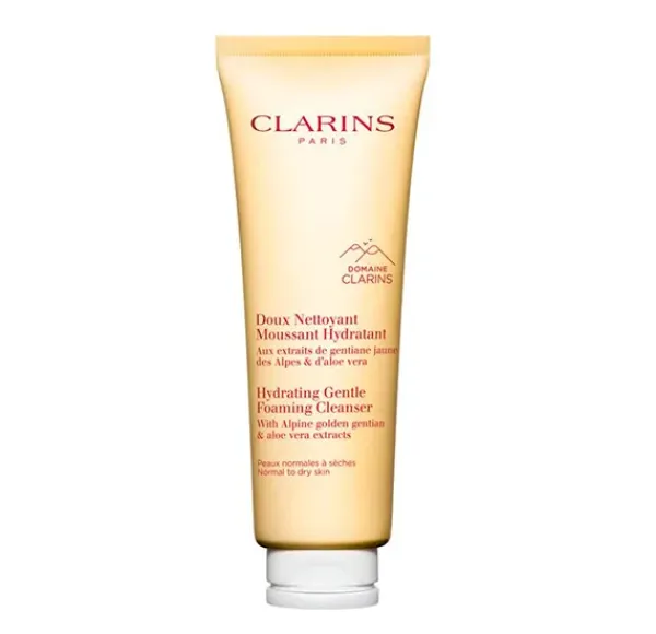 Esta espuma limpiadora, enriquecida con extractos de hierbas alpinas procedentes de la Hacienda Clarins, desmaquilla, hidrata y elimina las impurezas mientras preserva el equilibrio cutáneo. Esta espuma limpiadora, enriquecida con extracto de aloe vera bio que ayuda a hidratar la piel para dejarla suave y con una sensación agradable, es ideal para equilibrar las pieles normales a secas. Su fórmula también está enriquecida con el [Gentle Complex] de Clarins, compuesto por extractos de genciana amarilla bio y melisa bio que calman y suavizan la piel. Por último, el extracto de semilla de moringa limita la adherencia de impurezas sobre la piel. Textura cremosa que se transforma en una suave espuma fina. Para reducir su huella medioambiental, Clarins ha rediseñado este producto con un tubo más ecológico gracias a su cápsula más ligera.