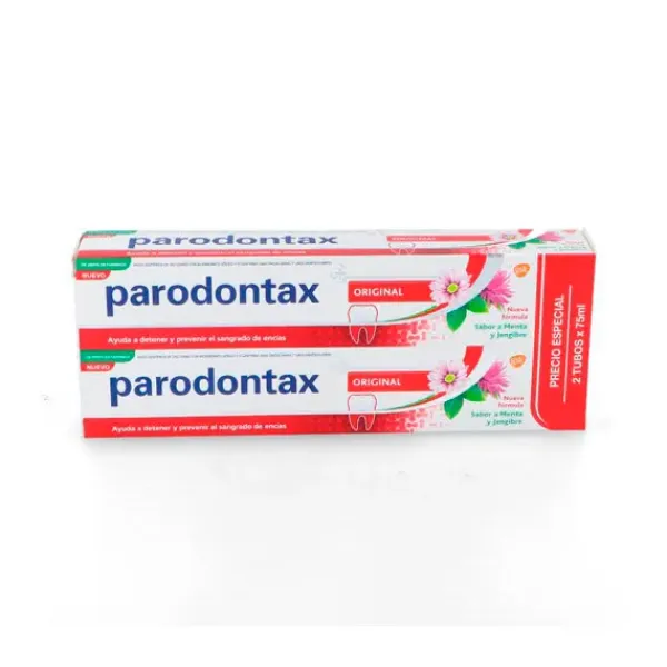 Duplo de la pasta dentífrica de uso diario con fluor y bicarbonato sódico recomendada para detener y proteger el sangrado de las encías.