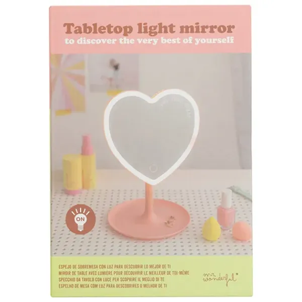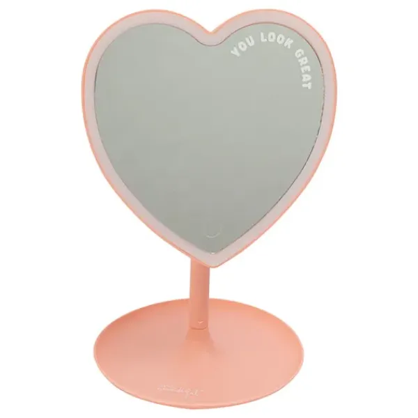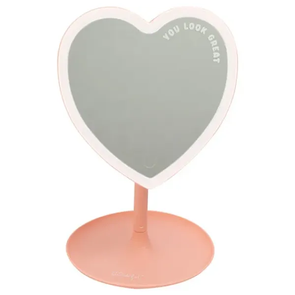 Espejo de sobremesa realizado en plástico, con forma de corazón.