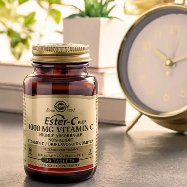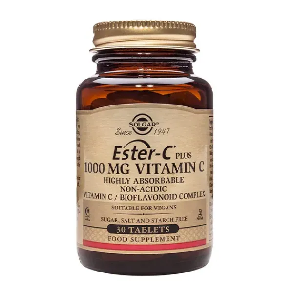 Solgar Ester-C Plus Vitamina C Comprimidos aporta 1000 mg de este importante nutriente que contribuye a: