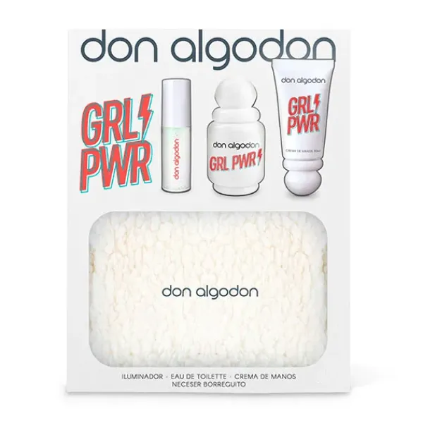 Empodérate con el Set de Regalo Girl Power de Don Algodón. Incluye la fragancia Girl Power 30 ml, un iluminador glitter, crema de manos perfumada y un neceser de borreguito. Un set perfecto para mujeres seguras de sí mismas.