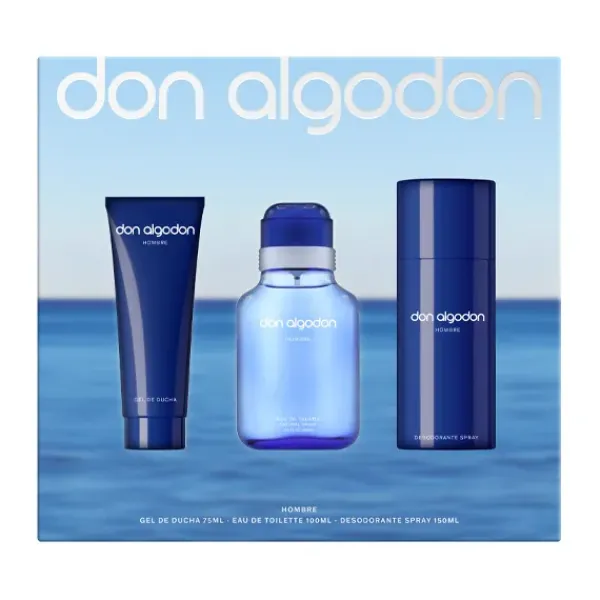 Descubre la esencia de la masculinidad con el Set Tripack Don Algodón para Hombre, que incluye tres productos esenciales con el icónico aroma Don Algodón: un Eau de Toilette de 100 ml, un desodorante en spray de 150 ml y un gel de ducha de 75 ml. Perfecto para el hombre moderno que busca frescura, protección y cuidado en su rutina diaria.