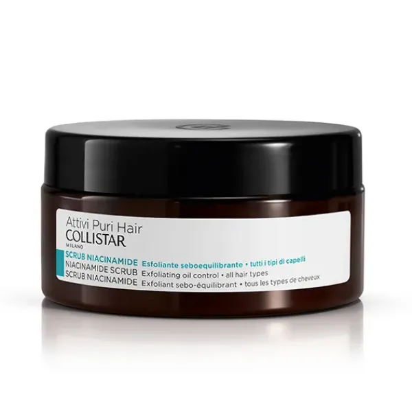 Exfoliante capilar de textura pastosa con Niacinamida de acción sebo reguladora.