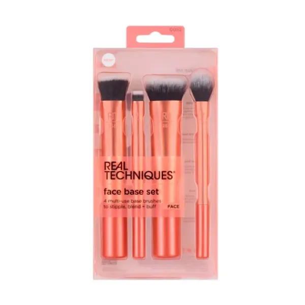 El juego Face Base de Real Techniques reúne 4 pinceles de maquillaje para ayudarte a lograr la base perfecta. El juego incluye nuestro pincel Ultra Buff, pincel Small Conceal, pincel Flat Contour y nuestro pincel Setting.