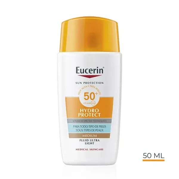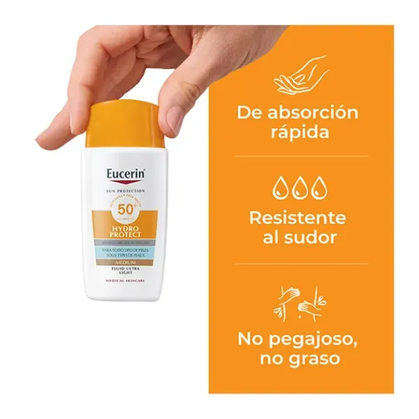 Perfumado −y con una fórmula ultraligera, no grasa y de absorción rápida que no deja residuos después del uso−, Eucerin Sun Face Hydro Protect Ultra-Light Fluid FPS 50+ ha demostrado clínica y dermatológicamente una excelente tolerancia en todos los tipos de piel, incluida la piel sensible.