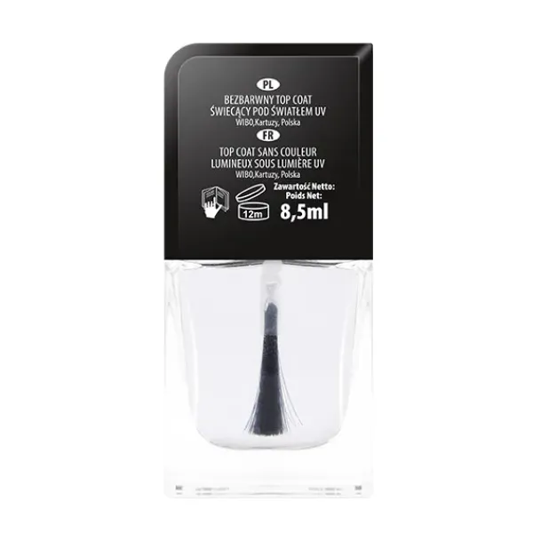 Top Coat de brillo para uñas que brilla con luz ultravioleta.