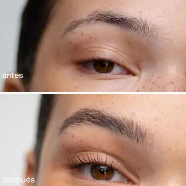 Brocha de doble punta para aplicar el producto y dar forma a las cejas con el cepillo.