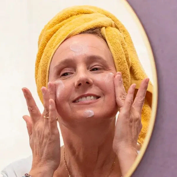 «Hay muchas cremas hidratantes que no me puedo poner, porque con los sofocos enseguida me suda la cara… En cambio, con esta crema no me pasa» — Mercè, 57 años.