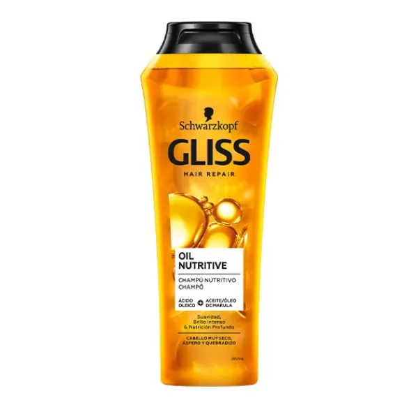 El champú nutritivo Schwarzkopf Gliss Oil Nutritive repara y proporciona una nutrición intensiva al cabello aspero y seco. Consigue un cabello sano con Gliss