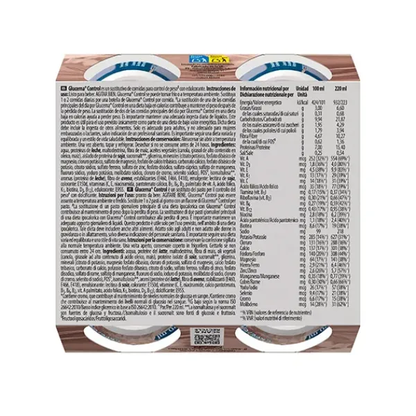 Glucerna Control Sabor café, formulado científicamente con cromo que contribuye al mantenimiento de niveles normales de azúcar en sangre*. Nuevo sustitutivo de comidas listo para tomar que se adapta a tu día a día. Se puede emplear como reemplazo de comidas principales o como alternativa a los snacks para pérdida o control de peso.