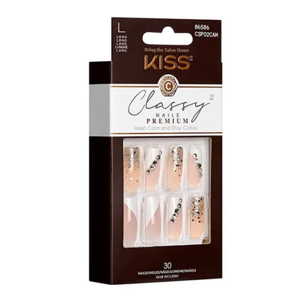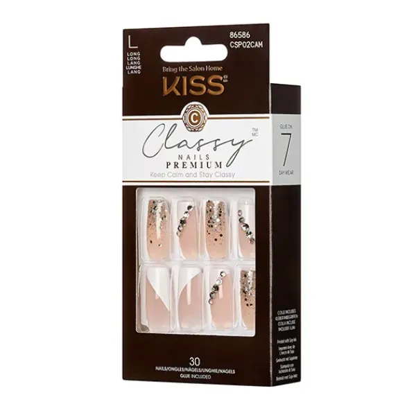 Las uñas postizas Premium Classy son una elegante combinación entre la manicura francesa moderna y los detalles joya de moda.