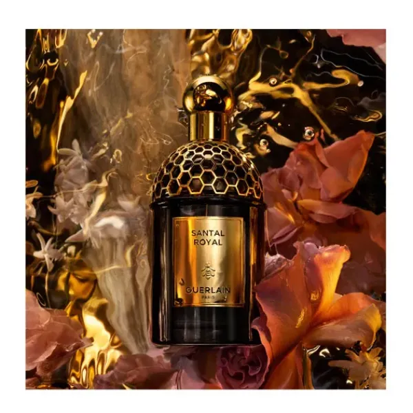 Descubre Santal Royal, una madera singular y preciosa que se eleva majestuosamente en la penumbra. Una estela que se revela en un juego de contrastes sutiles entre las notas misteriosas del cuero, el acorde de oud y la luminosidad de las notas florales del jazmín y la rosa.