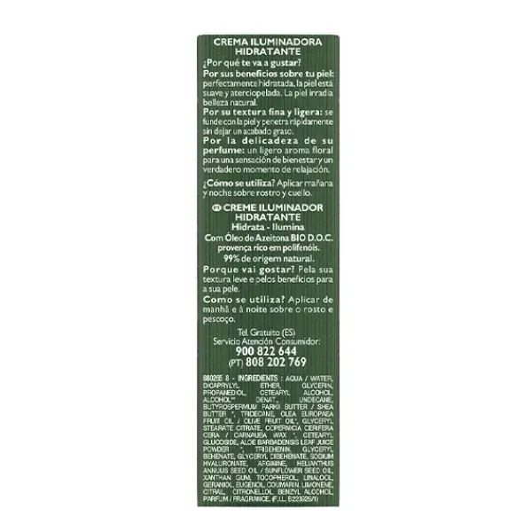 La Crema Iluminadora Hidratante con Aceite de Oliva Bio hidrata y realza la luminosidad de la piel.