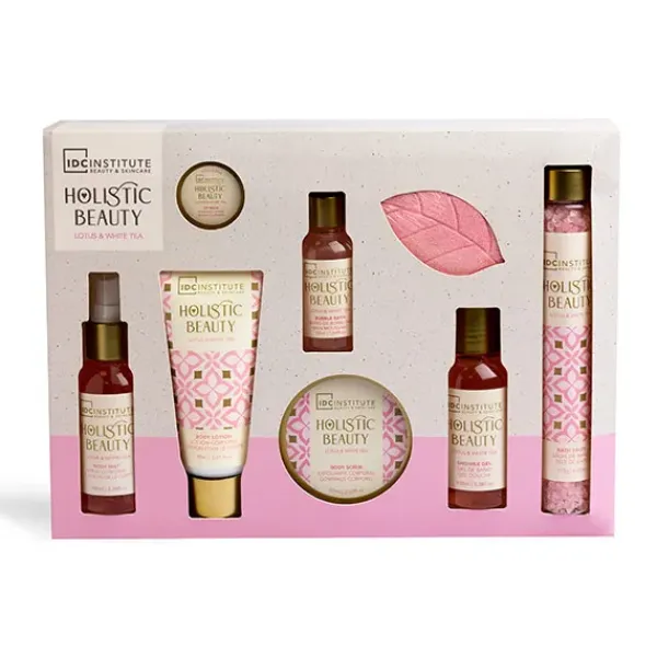 Embárcate en un viaje de relajación con nuestro lujoso set Holistic. Sumérgete en el sereno aroma de flor de loto y té blanco mientras te mimas con un baño de burbujas, loción corporal, exfoliante, gel de baño, cristales de baño, spray para almohadas, bálsamo labial y más.