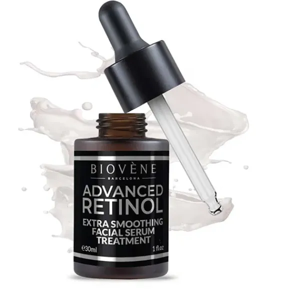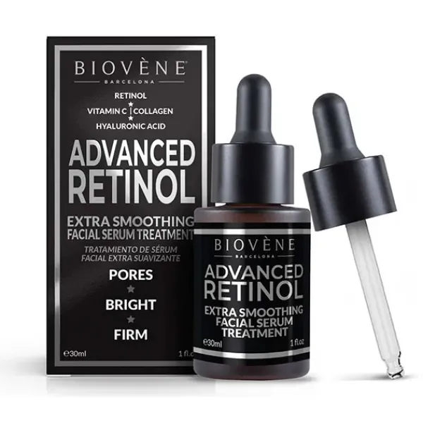 Tratamiento de sérum facial RETINOL AVANZADO extra suavizante con ingredientes estrella Ácido Hialurónico, Aloe Vera, Vitamina C, Pantenol y Colágeno que proporciona un efecto hidratante y nutritivo intensivo que penetra profundamente en la piel para reafirmar, iluminar y enfocar incluso las líneas y arrugas más finas, y ayudar a reducir la apariencia de poros e imperfecciones.