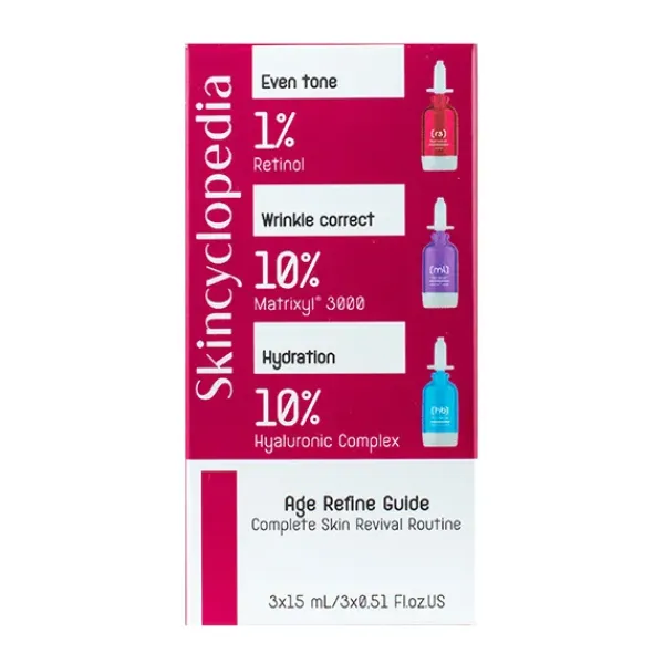 Un set de 3 sérums para una rutina completa de refinación de la edad.