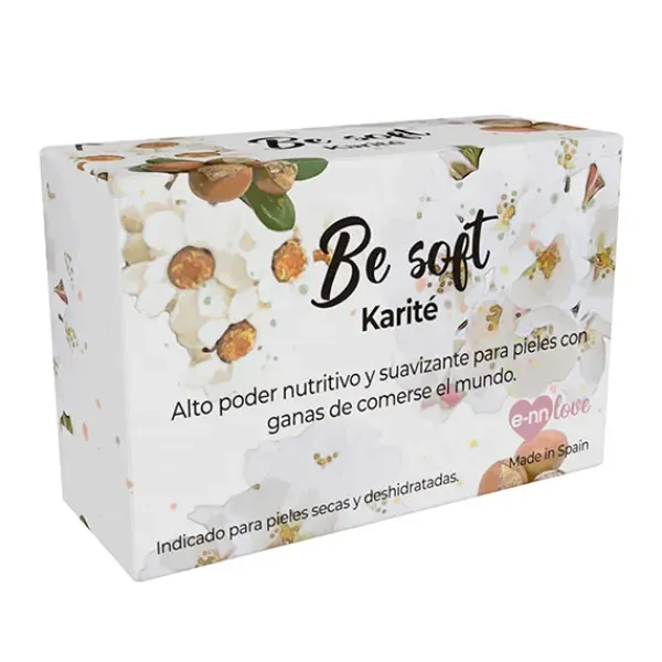 El jabón vegano BE SOFT con Karité es altamente nutritivo e hidratante, protege la piel de las agresiones medioambientales diarias.