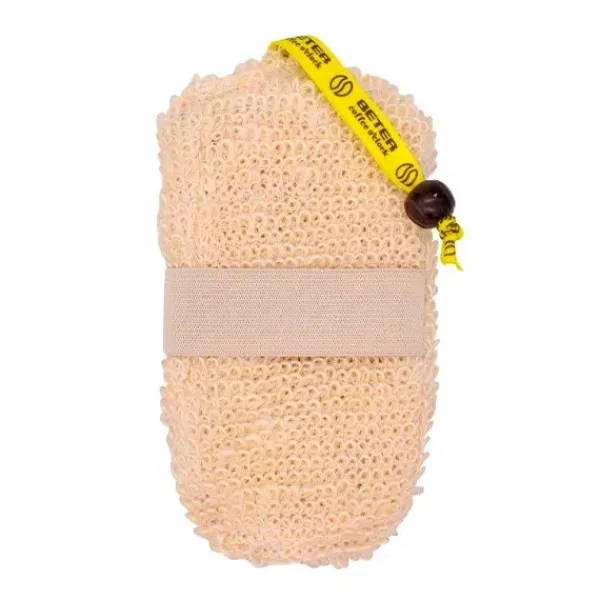 Elaborada con fibras vegetales naturales de cáñamo, incorpora una banda elástica para sujetarla cómodamente en la ducha o el baño.