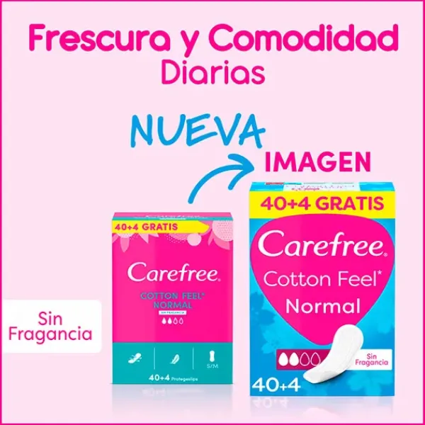 Los protegeslips cotton feel de Carefree son 100% transpirables y contienen extracto de algodón.