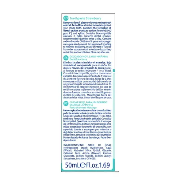 Flúor de baja abrasión, para los dientes de los mas pequeños.
