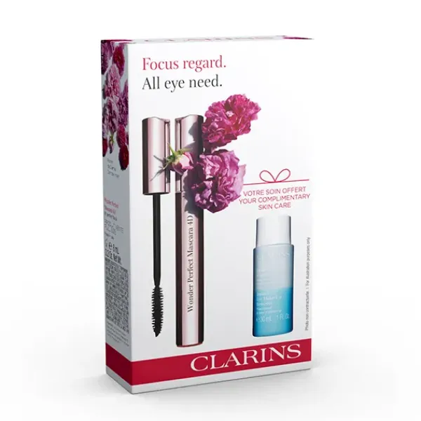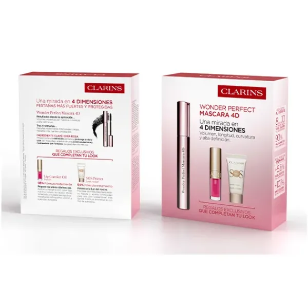 El Cofre Máscara Wonder Perfect 4D de Clarins es el aliado perfecto para un maquillaje de ojos impecable y unos labios hidratados y con brillo natural. Este set combina la máscara de pestañas Wonder Perfect 4D, que aporta volumen y definición, con la base iluminadora SOS Primer White, que unifica la piel, y el icónico Lip Comfort Oil, que nutre y embellece los labios.