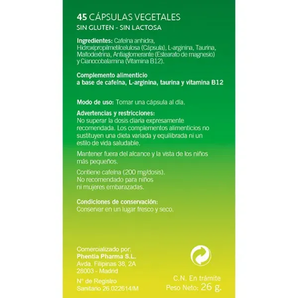 Fórmula exclusiva de acción rápida con 200mg de cafeína, 100mg de taurina, arginina y vitamina B12.