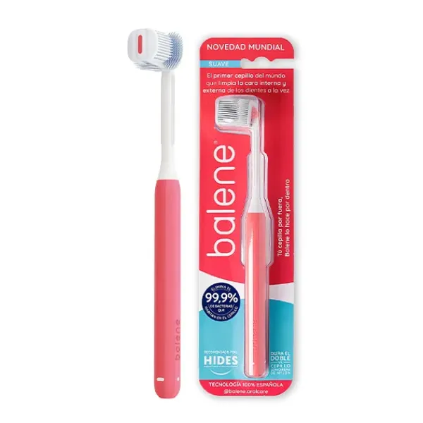 Balene es el primer cepillo del mundo que limpia la cara interna, externa y superficie de masticado de los dientes a la vez. Sus cerdas tyflex de nueva generación eliminan el 99,9% de las bacterias que habitan en el cepillo y duran el doble vs las cerdas de nylon.