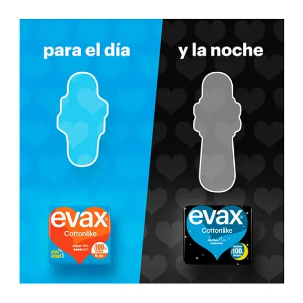 Las compresas Evax Cottonlike absorben el flujo menstrual y te ayudan a mantenerte totalmente limpia y sin rastro de olor.