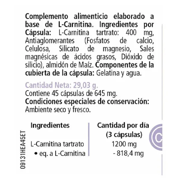 Complemento alimenticio elaborado a base de L-carnitina.