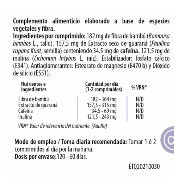 Complemento alimenticio elaborado a base de especies vegetales y fibra.