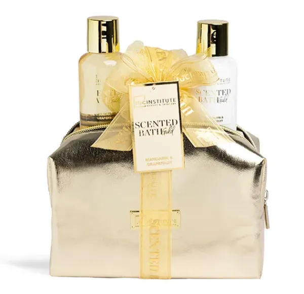 El set de baño mini de Scented Bath Gold es perfecto para llevar tus productos imprescindibles a donde quiera que vayas. Encuentra un gel de ducha, una loción corporal, una esponja de malla en un bonito y práctico neceser.