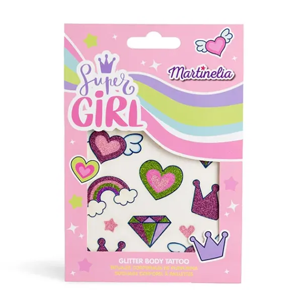 Llena tu cuerpo con los tatuajes más increíbles con este set de tatuajes de purpurina de la colección más rockstar. ¡Conviértete en un@ auténtic@ Super Girl!