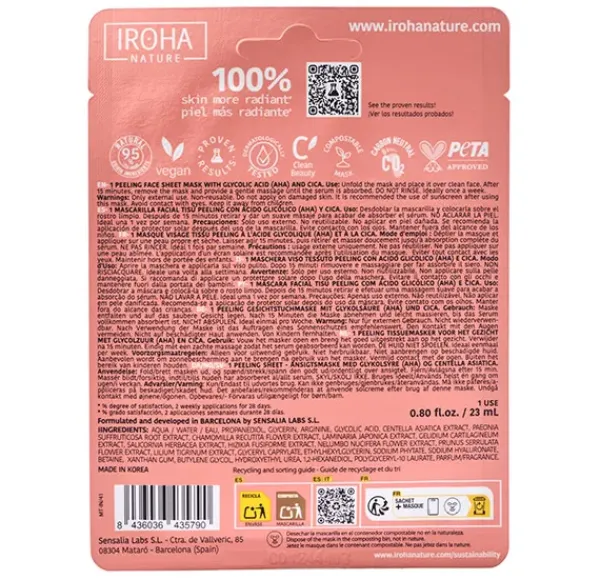 Esta mascarilla en tisú consigue promover la renovación de la piel sin irritar ni resecar la piel gracias a las propiedades hidratantes, antioxidantes y calmantes de la Centella Asiática.