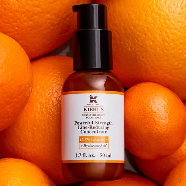 Powerful-Strength Line-Reducing Concentrate Serum, el serum facial antiedad con 12,5% de Vitamina C de Kiehl's, reduce las arrugas, ayuda a prevenir los daños de factores externos y envejecimiento (proporciona una acción anti-oxidante de larga duración) y estimula la producción de colágeno y elastina (más activa de noche).