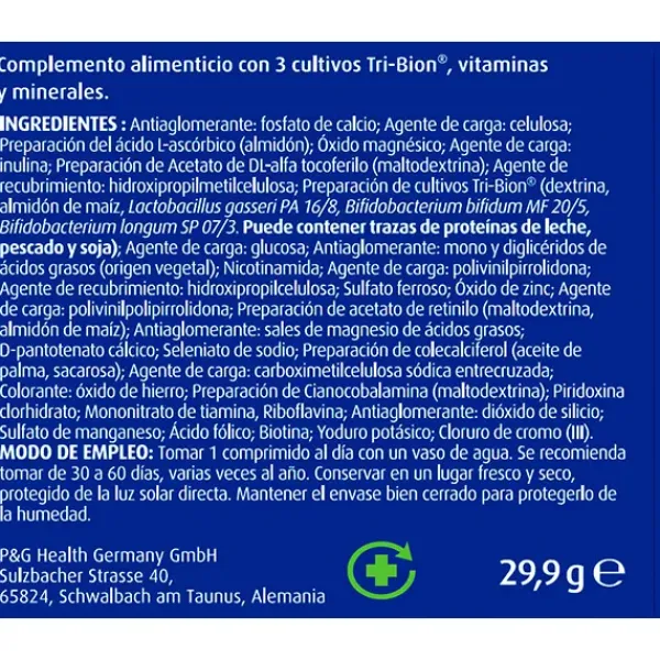 Los suplementos alimenticios Bion3 contienen adicionalmente en su fórmula los probioticos Tri-Bion®, que llegan vivos a nuestro intestino gracias a una película gastrorresistente específica que los protege de los ácidos del estómago.