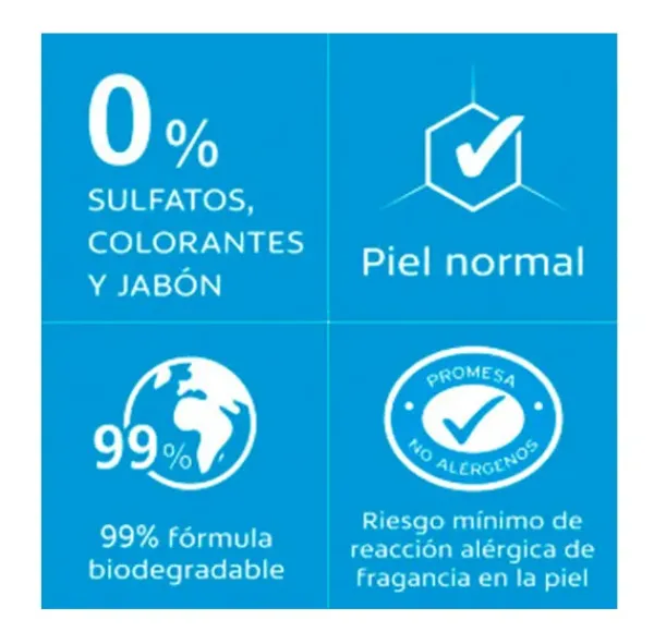 No contiene ni sulfatos, ni colorantes, ni jabón.