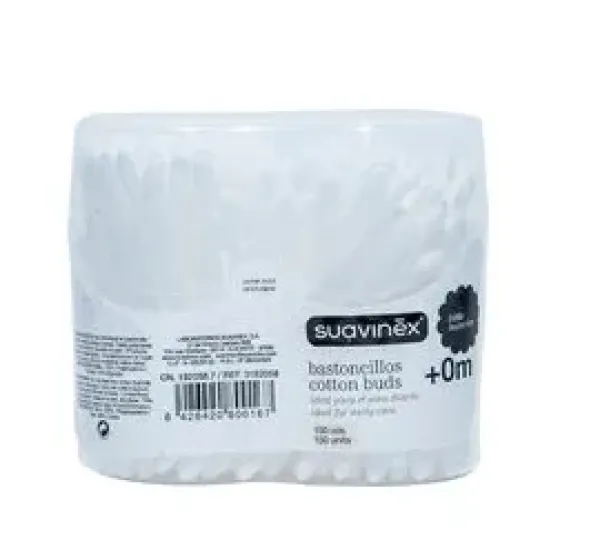 Bastoncillos 150 UnidadesFabricados al cien por cien de algodón, cada uno de los 150 bastoncillos del pack de Suavenix es ideal para la limpieza de los oídos o la nariz de los más pequeños. Además, son perfectos también para aplicar maquillaje o delinear. MODO DE APLICACIÓNNo introduzcas el bastoncillo de algodón en el interior de la naríz o el canal auditivo de tu bebé, sino que debes utilizarlo solamente en la zona exterior de su naríz o sus oídos.