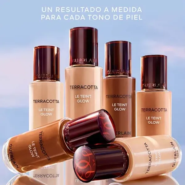 La fórmula de Terracotta Le Teint Glow, compuesta por un 56% de agua de tratamiento, combina el poder embellecedor del maquillaje con eficaces activos de tratamiento¹ y ha sido diseñada para revelar el brillo dentro y fuera de la epidermis. En su interior, el agua de tratamiento contribuye a la generación de una luminosidad prolongada al hidratar la piel de forma duradera. En el exterior, sus nácares generan un brillo natural instantáneo.